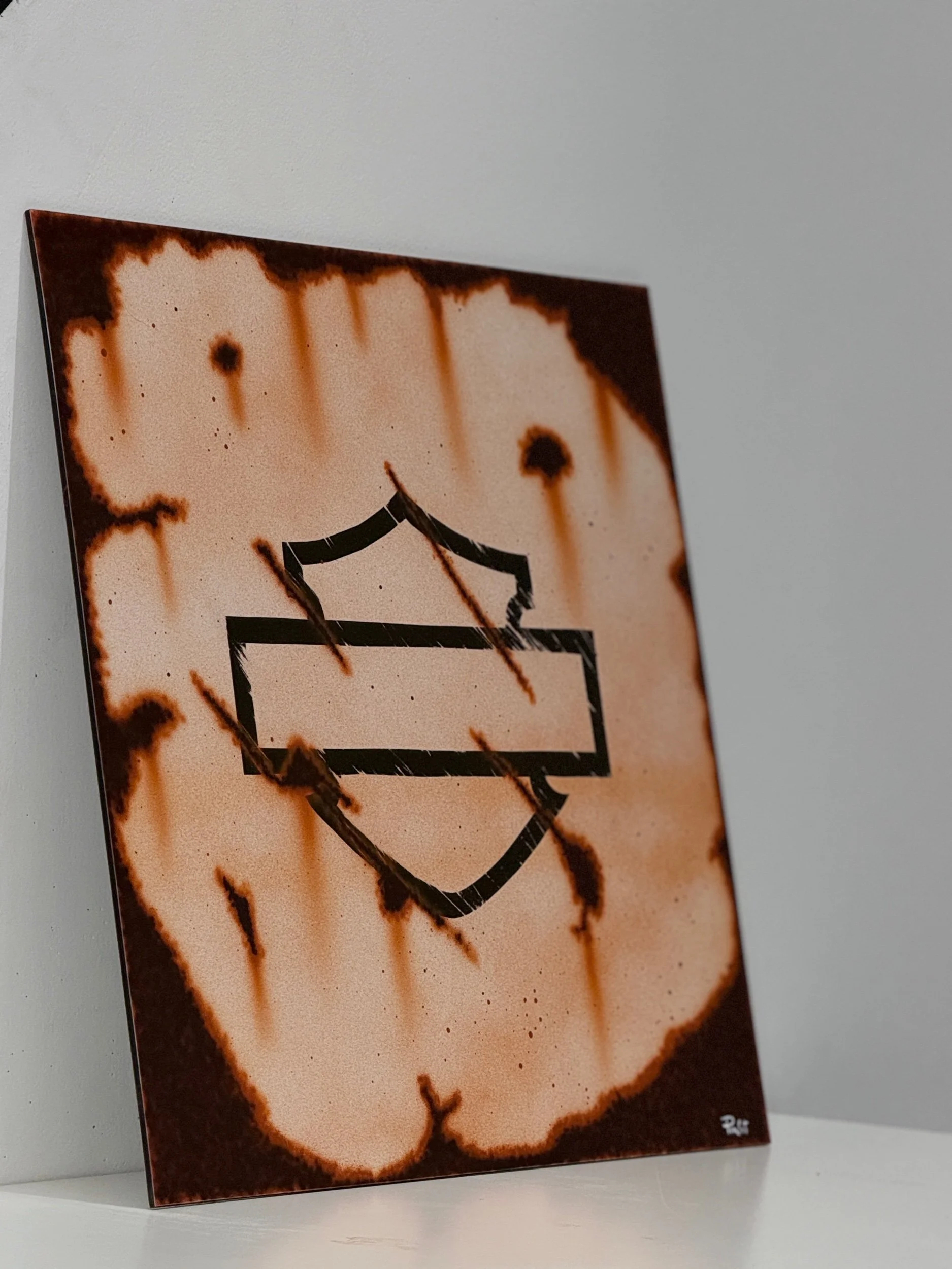Aged, worn, and full of attitude—this hog sign leans into raw patina and old-school ride culture. Looks like it’s lived in the garage longer than you have.